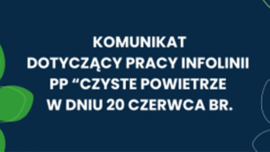 KOMUNIKAT DOTYCZĄCY INFOLINII PP „CZYSTE POWIETRZE” W DNIU 20 CZERWCA BR.