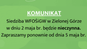 W piątek 2 maja 2025 roku Wojewódzkiego Fundusz Ochrony Środowiska i Gospodarki Wodnej w Zielonej Górze będzie nieczynny.